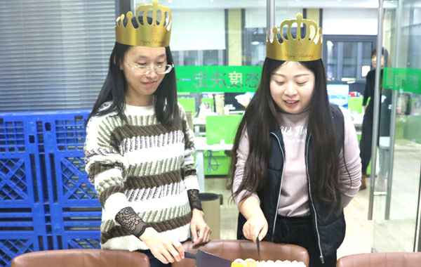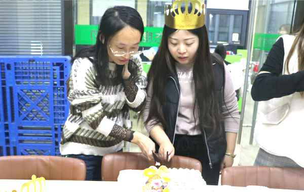 公司会每月为过生日的员工准备生日红包和蛋糕共同庆祝,虽然每次时间不同、参加的人员偶尔有不同,但公司对员工的这份关心和关爱是一样的。由张总为她们颁发生日红包。